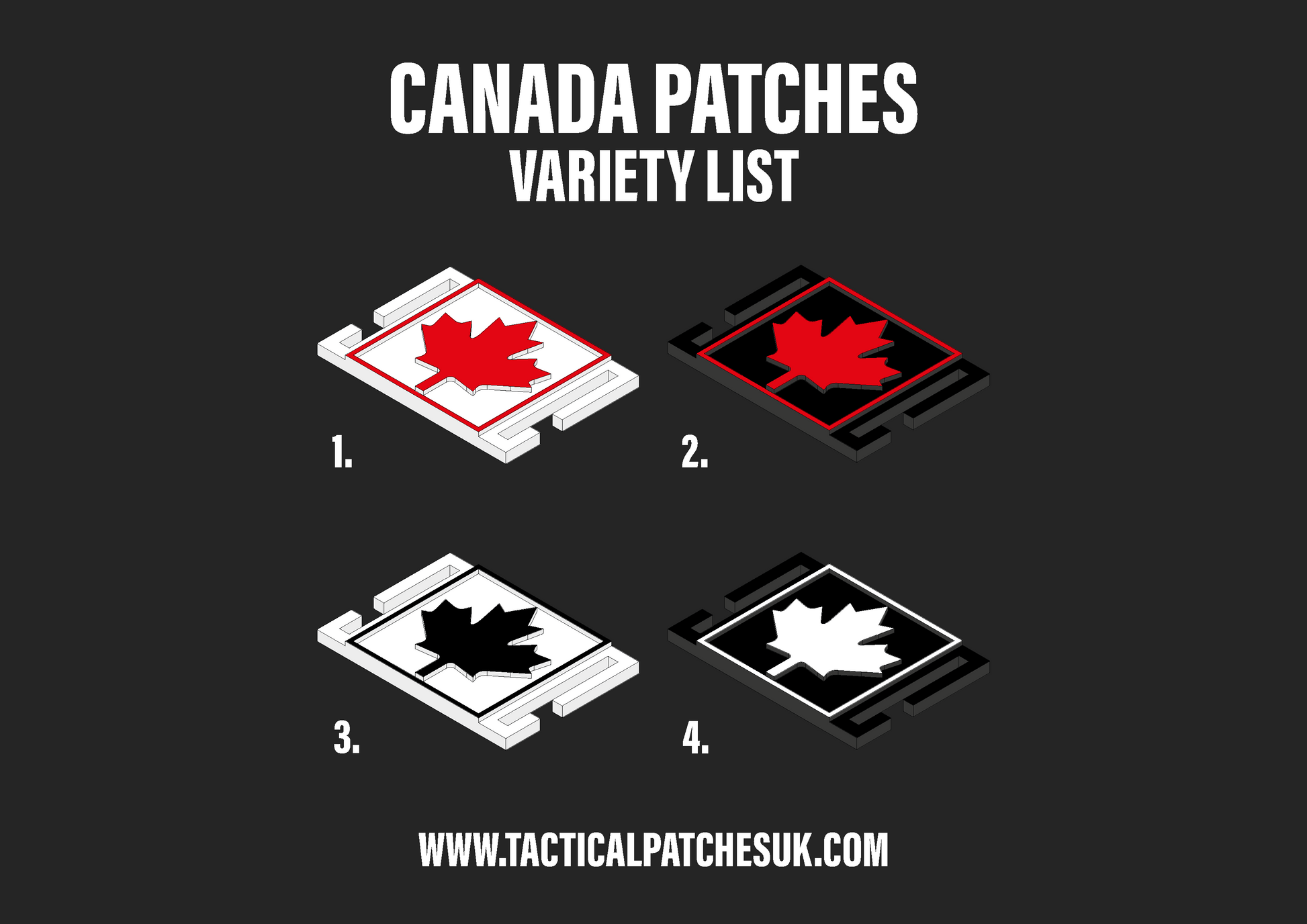 These Canada Molle patches are a perfect addition to your tactical kit! Sized at 5cm x 3.5cm they are the perfect size for adding some style to your gear! Made from PLA 3D Printed Plastic, the patches are strong, waterproof and easy to clean. Available in multiple colour options you get to choose your style.