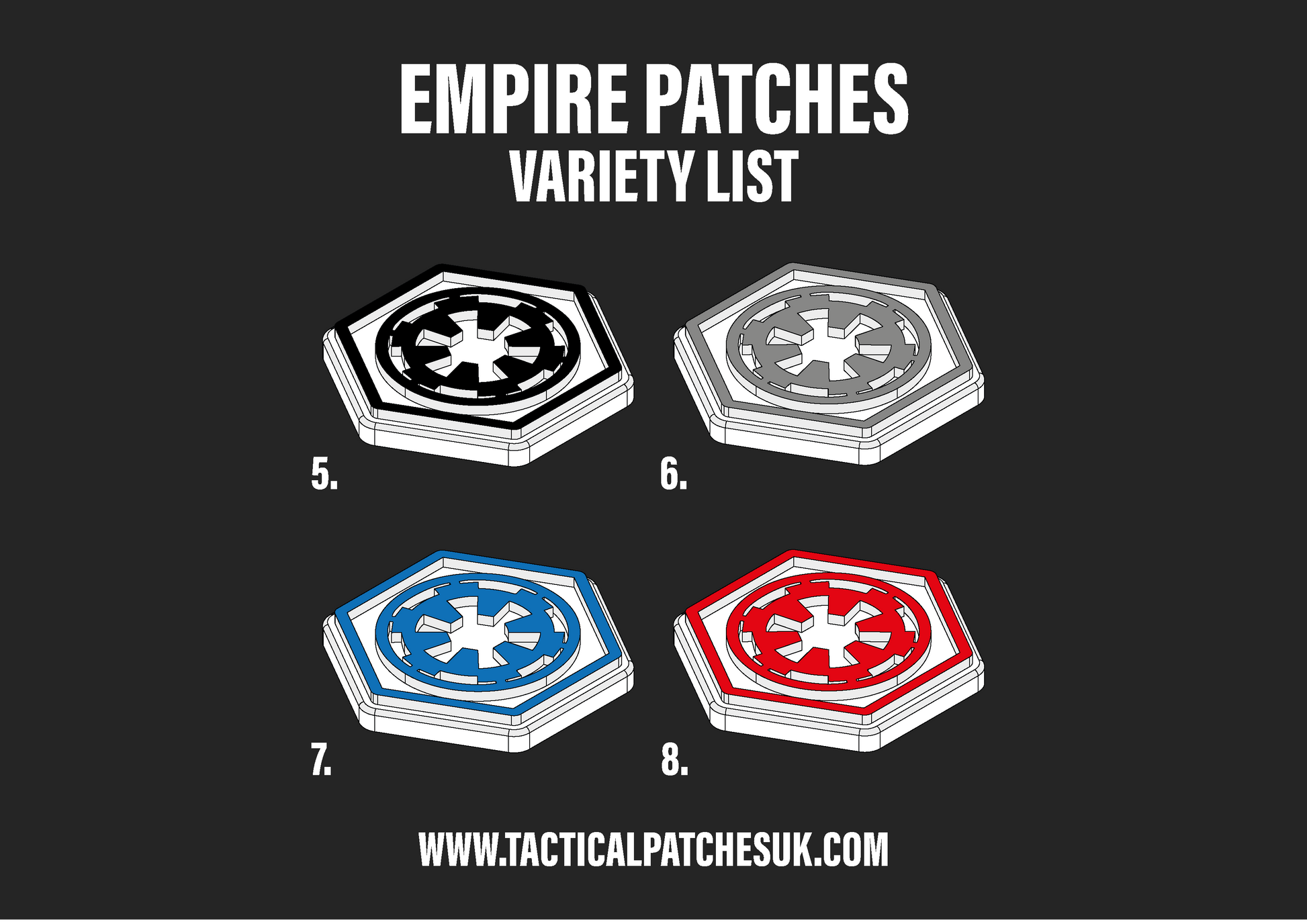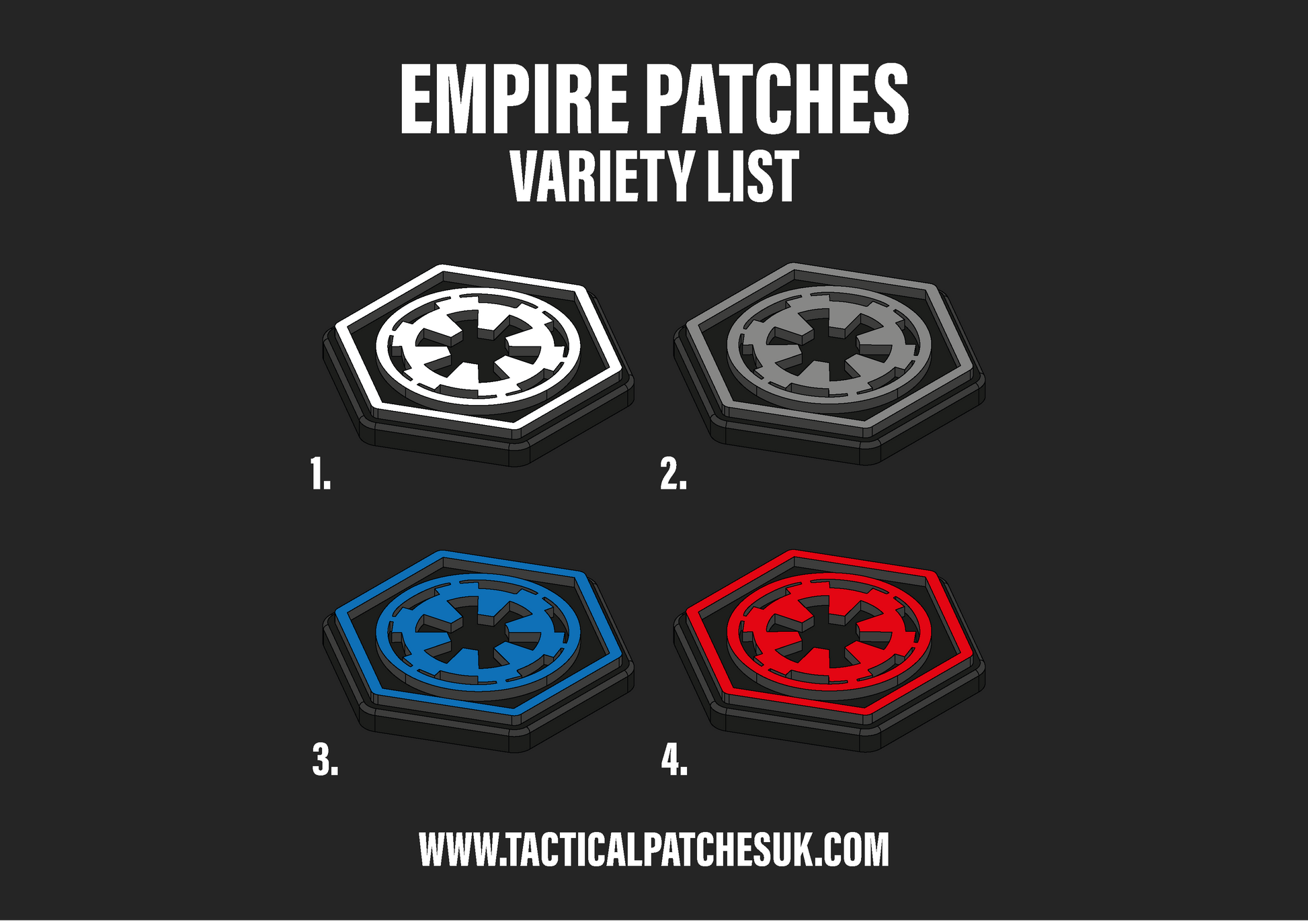 These Empire Velcro patches are a perfect addition to your tactical kit! Sized at 3.2cm  high they are the perfect size for adding some style to your gear! Made from PLA 3D Printed Plastic, the patches are strong, waterproof and easy to clean. Available in multiple colour options you get to choose your style.