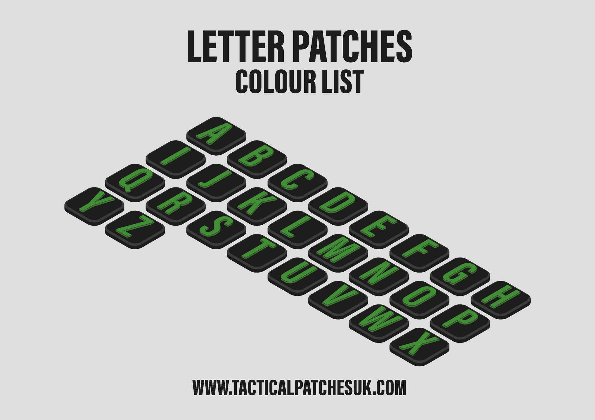 Letters 1x1 Velcro Patches - Black Background