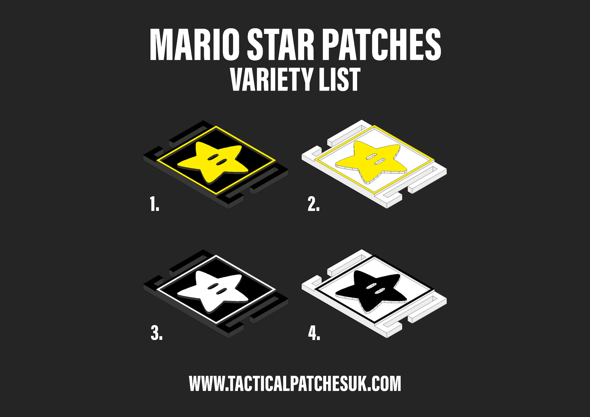 These Mario Star Molle patches are a perfect addition to your tactical kit! Sized at 5cm x 3.5cm they are the perfect size for adding some style to your gear! Made from PLA 3D Printed Plastic, the patches are strong, waterproof and easy to clean. Available in multiple colour options you get to choose your style.