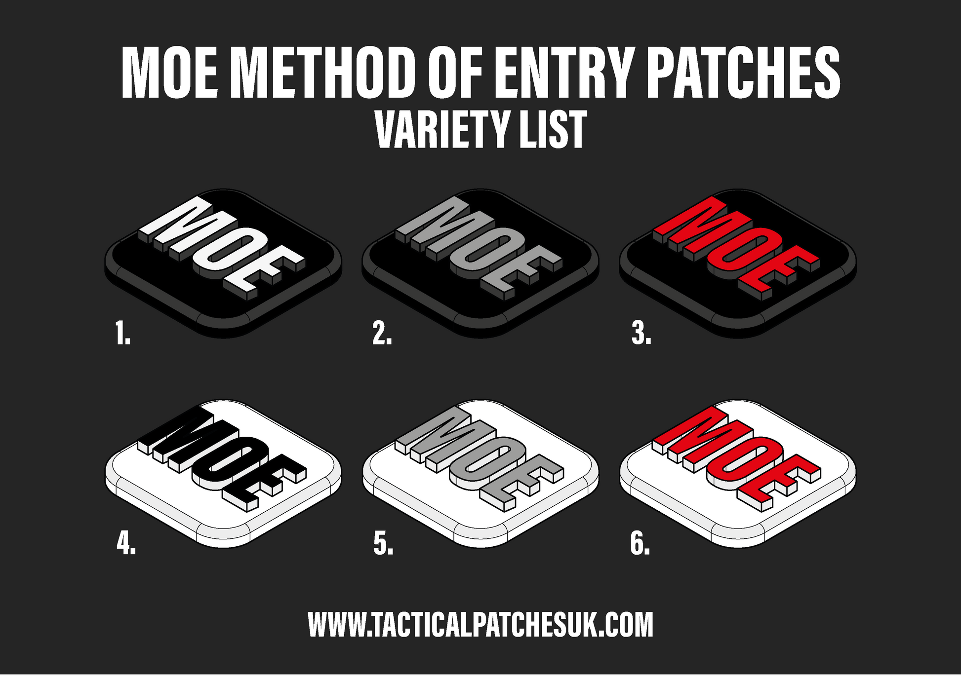 These MOE - Method of Entry Velcro Patches Velcro patches are a perfect addition to your tactical kit! Sized at 2.5cm x 2.5cm they are the perfect size for adding some style to your gear! Made from PLA 3D Printed Plastic, the patches are strong, waterproof and easy to clean. Available in multiple colour options you get to choose your style.