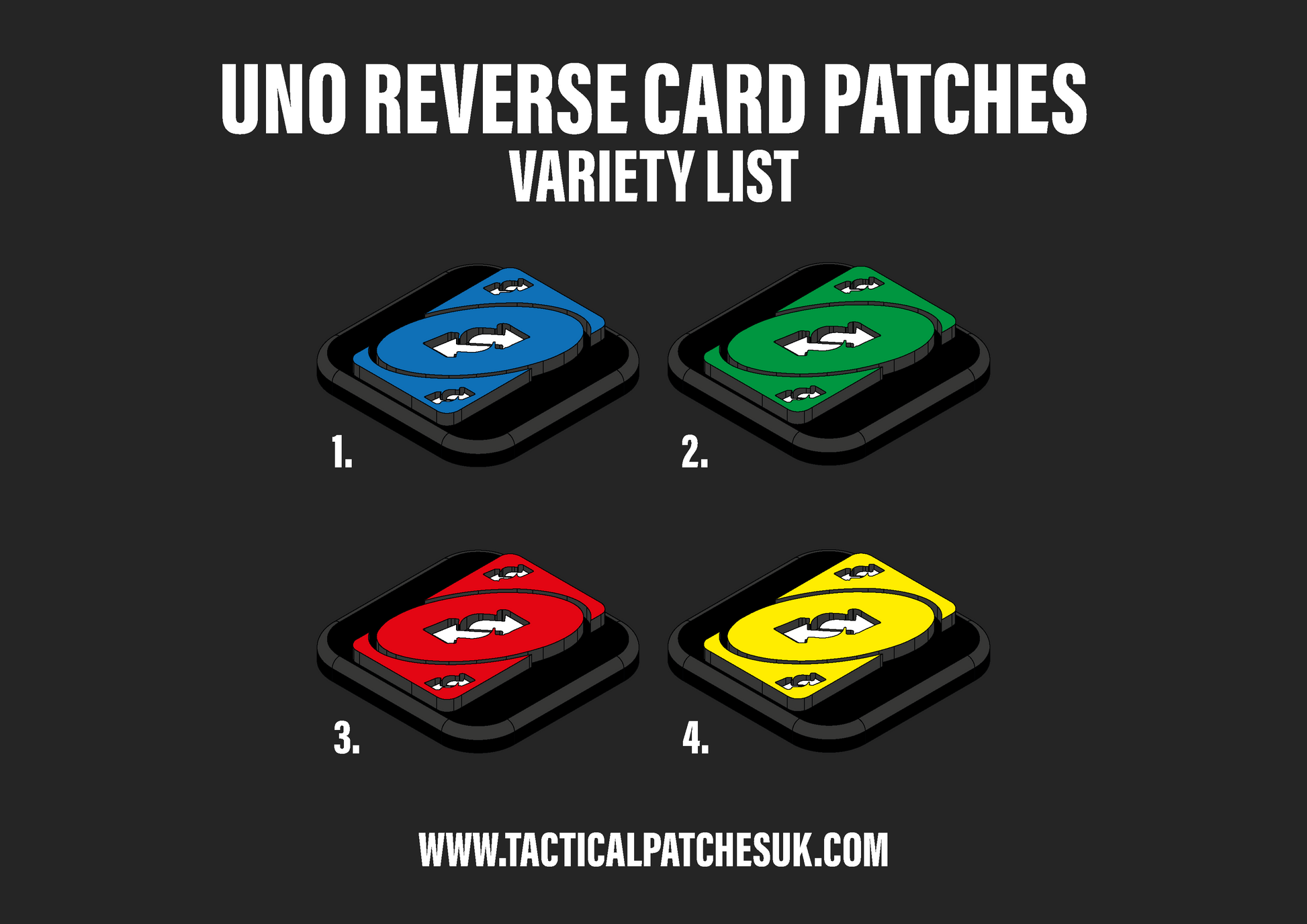 These Uno Reverse Velcro patches are a perfect addition to your tactical kit! Sized at 2.5cm x 2.5cm they are the perfect size for adding some style to your gear! Made from PLA 3D Printed Plastic, the patches are strong, waterproof and easy to clean. Available in multiple colour options you get to choose your style.